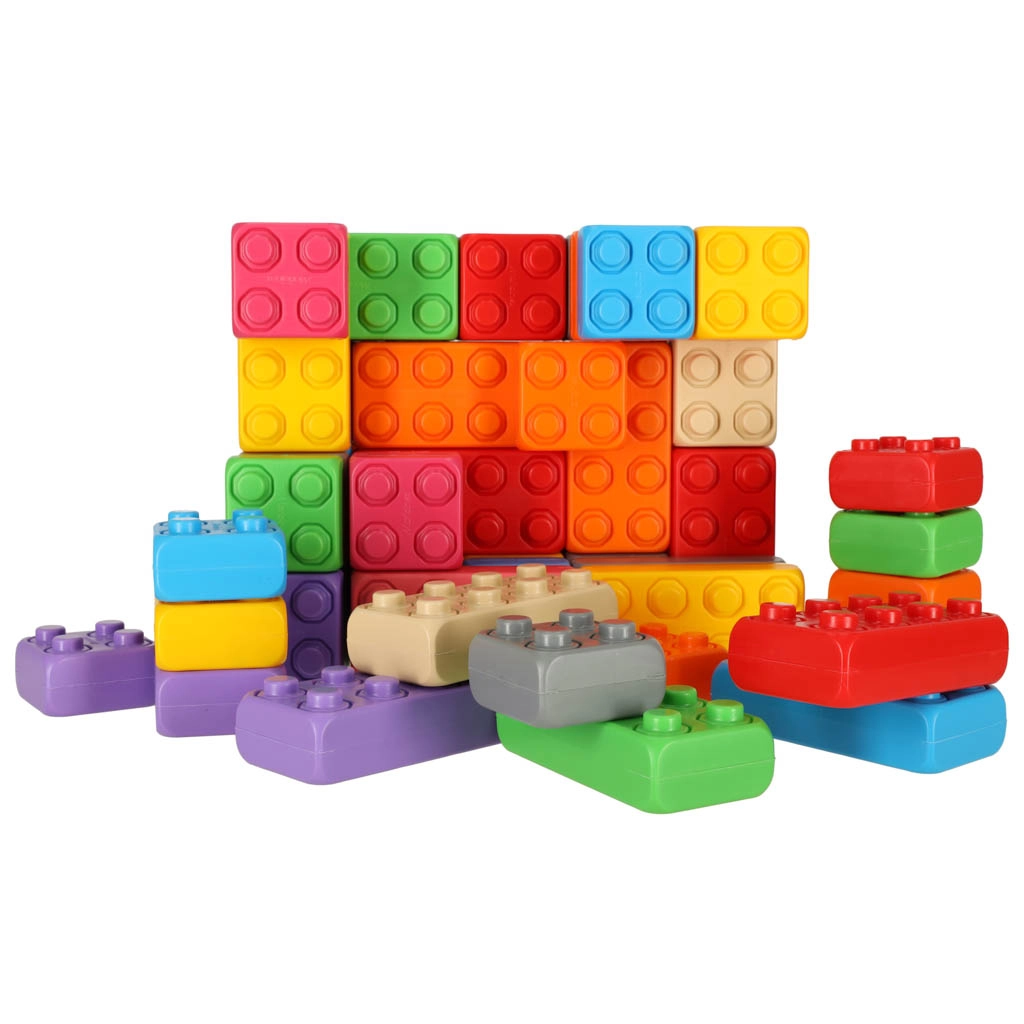 Mitmekesised värvid ja vormid innustavad lapsi ehitama torne, majakesi ja lihtsaid tegelasi.