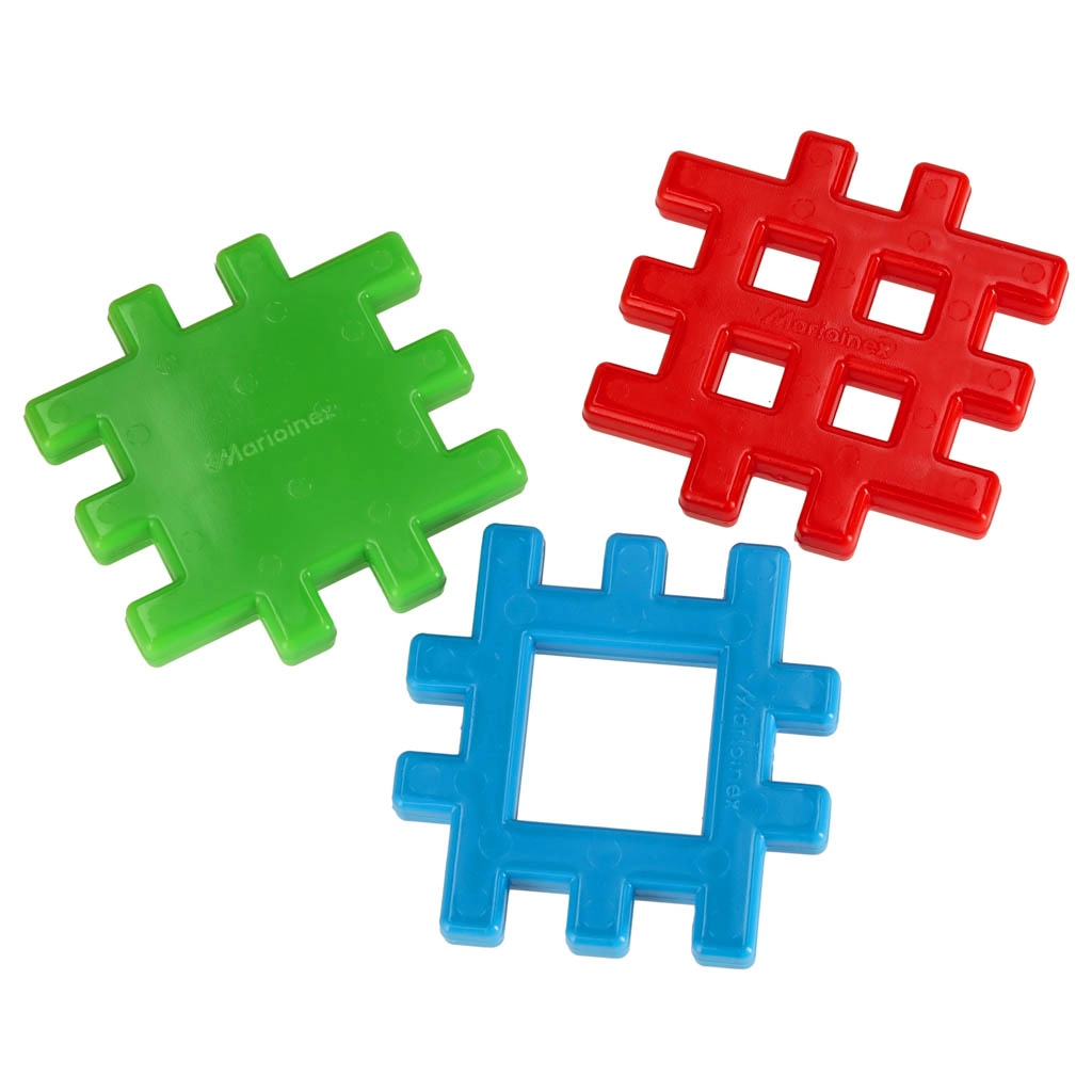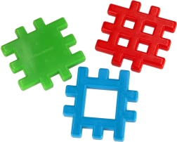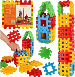 See 24 värvilise tükiga ehituskomplekt, mille mõõt on ligikaudu 10,5 × 10,5 cm, sobib suurepäraselt esimesteks konstruktsioonimängudeks. Suuri ja kergesti haaratavaid klotse saab turvaliselt ühendada; need hoiavad hästi vormi ning neid saab korduvalt lahti võtta ja kokku panna ilma kahjustusteta. Lapsed saavad palju mängulusti ning samal ajal tugevneb käe-silma koordinatsioon ja loogiline mõtlemine.