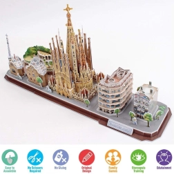 See 3D‑pusle toob sinu koju Barcelona õhustiku, sealhulgas kuulsa SAGRADA FAMILIA ja teised arhitektuuripärlid. Tükid on eelnevalt välja lõigatud, need murduvad plaadilt kergesti ning juhendi abil saad need sujuvalt kokku panna ilma liimi ja käärideta. Valmis mudel mõjub stiilse aksessuaarina elutoas, kabinetis või lastetoas.
