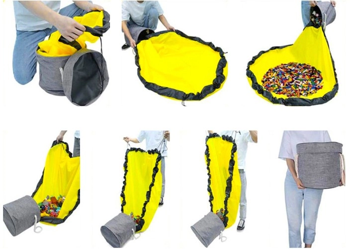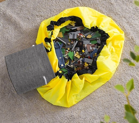 Laota laiali suur matt (Ø 135 cm), lase lastel mängida ja tõmba lõpetamisel lihtsalt stoppersulguriga nöörist – mänguasjad libisevad hetkega korvi.