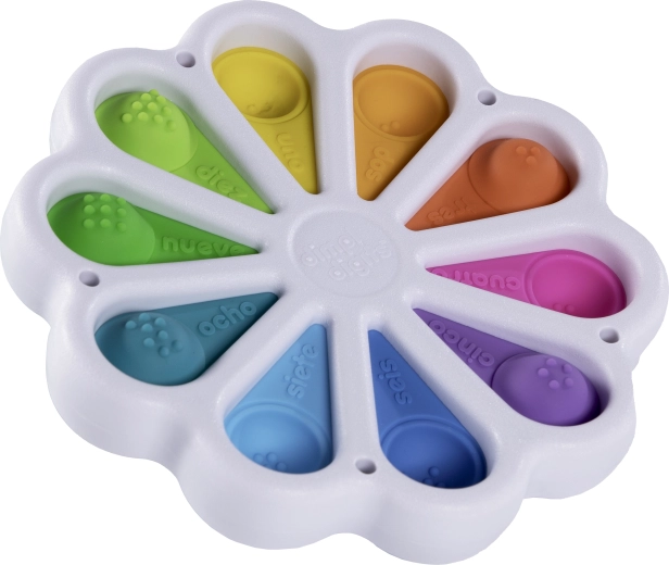 Avasta lõbus sensoormänguasi Dimpl Digits tootjalt FAT BRAIN – lillekujundusega vajutatavad mullid koos numbrite ja loendamisega, mis arendavad peen- ja üldmotoorikat, silma–käe koordinatsiooni ning terviklikku psühhomotoorset arengut. Värvilised silikoonmullid kutsuvad vajutama, õppima värve ja esimesi numbreid. Sobib alates sünnist.