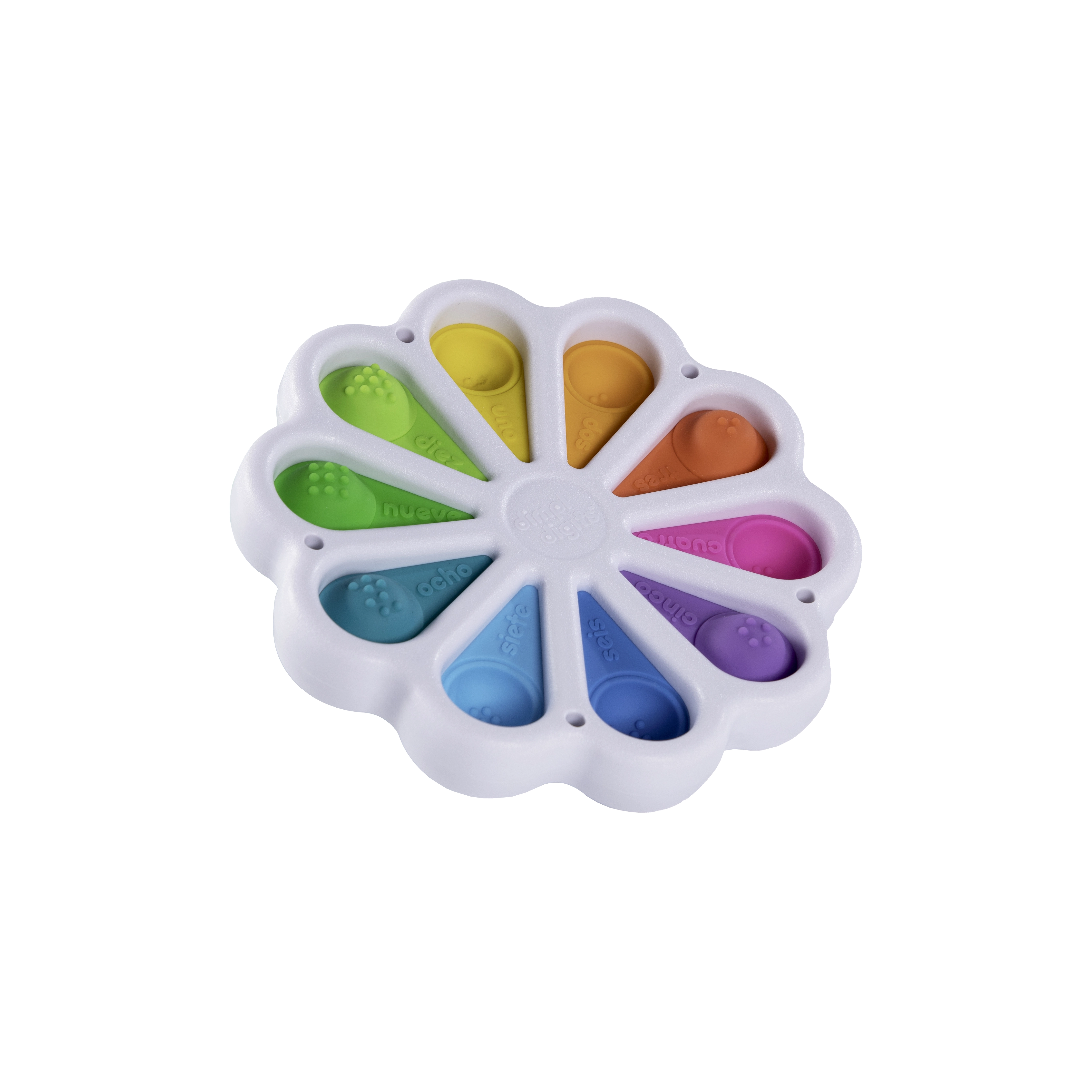 Sensoormänguasi Dimpl Digits pakub lastele rahustavat pop-efekti ning esimesi samme numbrite tundmaõppimiseks. Iga mulli peal on number koos ingliskeelse sõnaga, alumisel poolel vastav arv täppe – nii seovad lapsed loomulikult nägemis-, kompimis- ja esmased matemaatikaoskused.