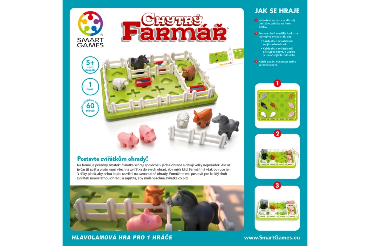 Aita taastada kord talus loogikamänguga Nutikas talunik firmalt SMART. Vaid kolme aiaga tuleb jagada aas nii, et igal loomaliigil oleks oma aedik ja samal ajal juurdepääs veele. Ideaalne alates 5. eluaastast, arendab loogilist mõtlemist, ruumilist kujutlusvõimet ja probleemilahendust.