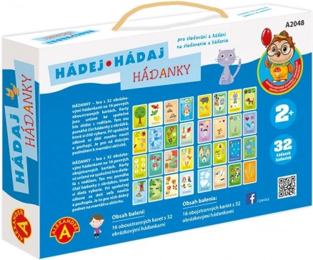 - 16 suurt värvilist kaarti (32 pildimõistatust), tšehhi ja slovaki juhend, tugev sangaga karp