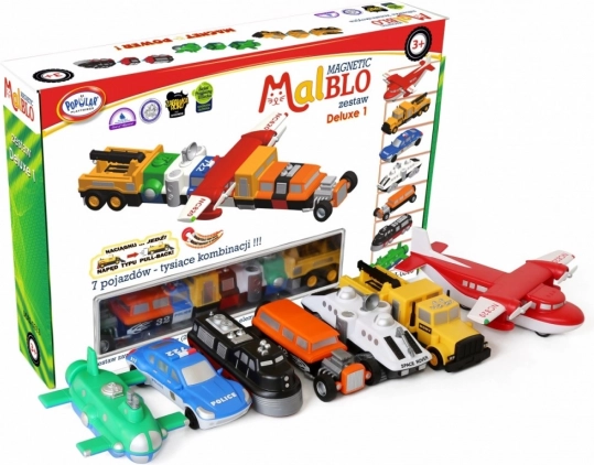 MalBlo MAGNETIC Deluxe on nutikas mänguasi väikestele inseneridele. 21 elementi pakendis (7 valmismudelit) võimaldab kokku panna üle 1000 erineva kombinatsiooni – autodest ja veokitest kuni lennukite ja tulevikumasinateni. Osadel on ideaalne magnet- ja mehhaaniline hoidvus, mis teeb käsitsemise lihtsaks ning ühendused püsivad kindlalt koos.