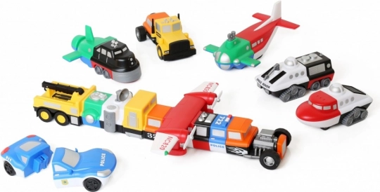 Pakendis on 21 elementi ja 7 valmiskujul sõidukit. Sega, kombineeri ja loo originaalseid masinaid täpselt oma fantaasia järgi.