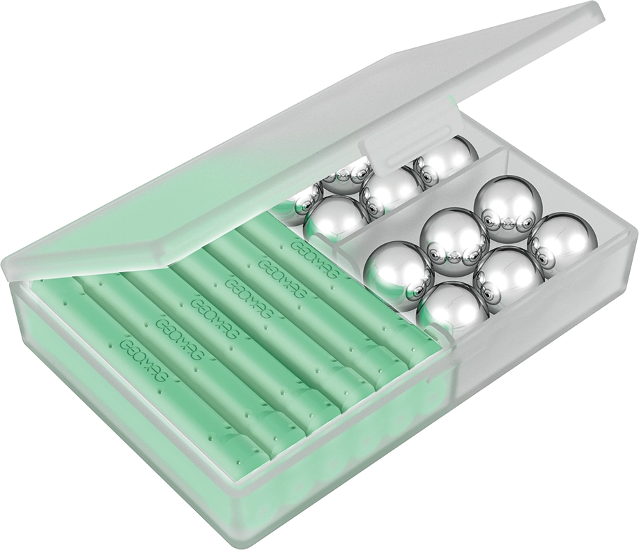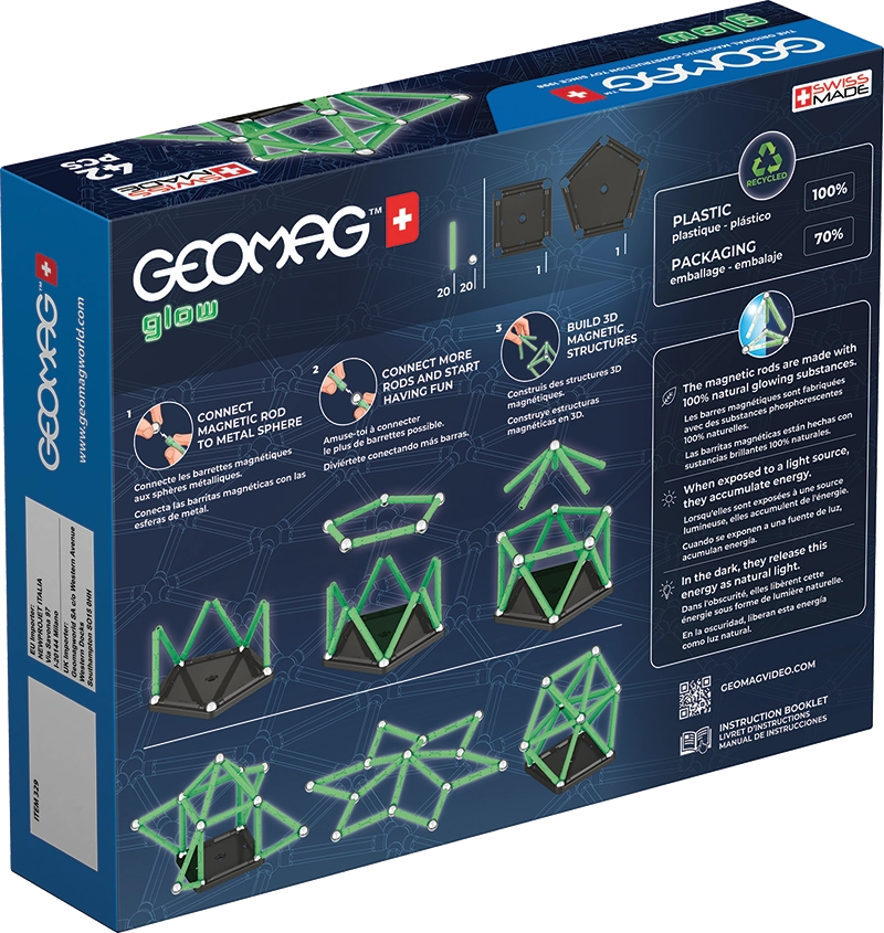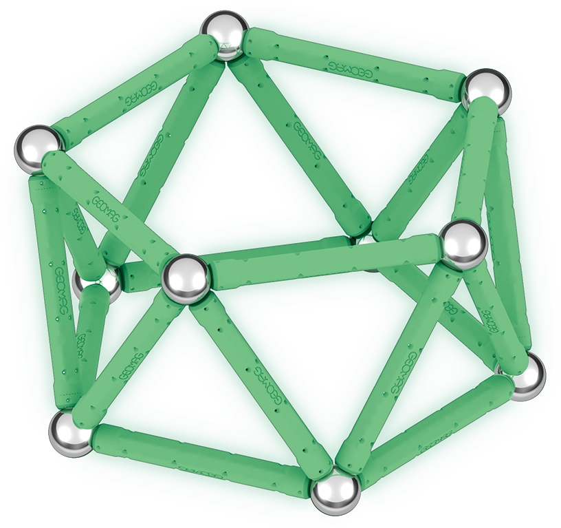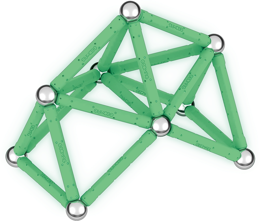 GEOMAG Glow on originaalne magnetehituskomplekt, mis võimaldab luua piiramatult erinevaid konstruktsioone magnetpulkade ja terasest kuulide abil. Fosforestseeruvate detailide tänu säravad sinu mudelid pärast valgusega laadimist pimedas kaunilt – ideaalne lõbusateks katsetusteks ja pilkupüüdvaks õppimiseks.