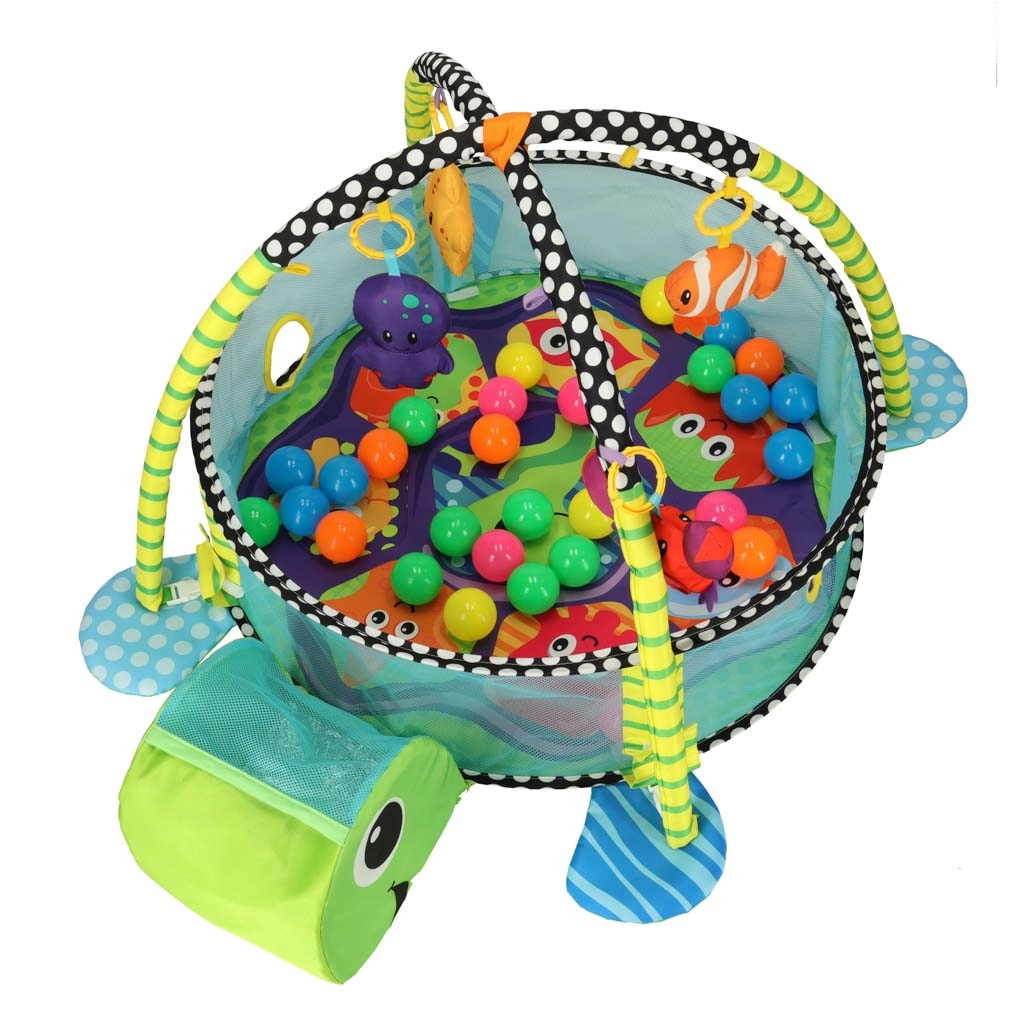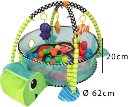 See multifunktsionaalne matt pakub beebile turvalist avastamisruumi juba esimestest päevadest. Kahe kaare ja riputatavate mänguasjade abil õpib laps haarama, jälgima ja liigutusi koordineerima. Võrkküljed loovad hõlpsasti basseini 30 värvilise palliga, mis innustab iseseisvale istumisele ja meeltepõhisele mängule.