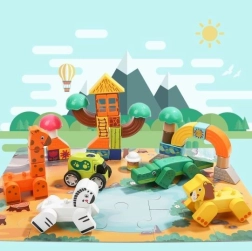 Liitu safari seiklusega ja loo oma lõbustuspark. Komplekt sisaldab puslet pargi rajamiseks koos tiigi ja põõsastega.