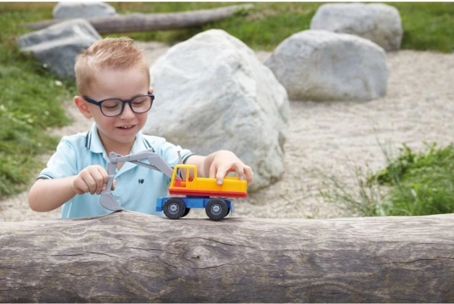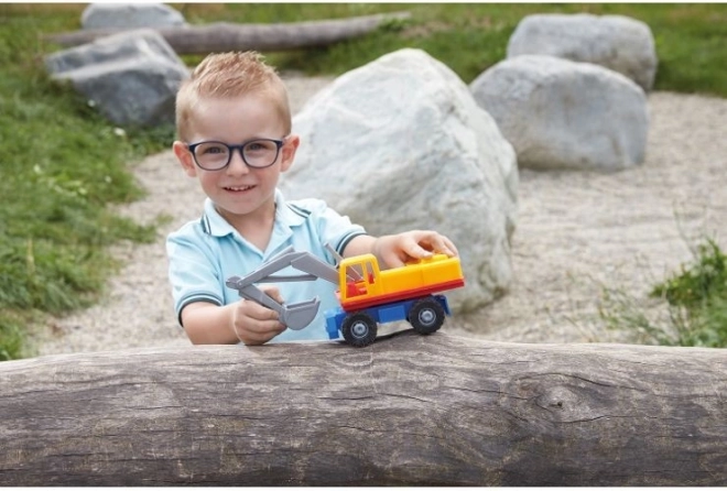 See ekskavaator realistliku välimuse ja liikuvate osadega matkib tõelisi ehitusmasinaid.
