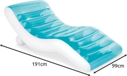 Naudi lõõgastust vee ääres ja aias INTEX 56874 täispuhutava lamamistooliga. Ergonomiliselt kujundatud pind kohandub täiuslikult kehaga, kaks sõltumatut kambrit tagavad stabiilsuse vees ning mugavad mõõtmed võimaldavad mugavat puhkust ka täiskasvanutele. Kerge konstruktsioon võimaldab kiiret täispumpamist ja kokkupakkimist ning stiilne disain läbipaistva pealmise kihiga mõjub efektseina nii basseini ääres kui ka rannas.