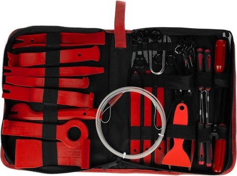 Otsid universaalset komplekti, millega auto salongi saab kiirelt ja õrnalt lahti võtta? See 40-osaline polstri eemaldamise komplekt võimaldab liiste, klambreid, kinniteid ja multimeediaseadmeid täpselt ja ohutult eemaldada plastpindu kriimustamata. Ergonomilise kujuga plastikkangid PP-materjalist säästavad pindu, roostevabast terasest metalltööriistad saavad hakkama ka tugevamalt kinnitunud detailidega.