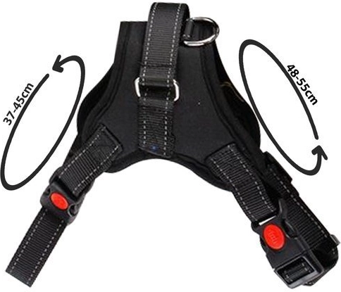 Trakse on lihtne reguleerida nii kaela- kui ka rinnapiirkonna ümbermõõdule. Lukustusega kiirkinnituse pannalid tagavad kindla sulgemise, samal ajal kui helkurõmblused suurendavad nähtavust hämaras. Praktiline ülemine käepide aitab koera keerukates olukordades kontrollida ning metallist D-rõngas võimaldab rihma turvalist kinnitamist.