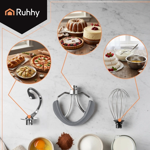 Ruhhy planetaarne köögikombain koos vastupidavate libisemiskindlate iminappadega tagab töö ajal stabiilsuse. Metallist planetaarkäigustik ja kolm eri otsikut – konks, vispel ja segaja – võimaldavad koostisosi põhjalikult töödelda ja saavutada parimad tulemused.
