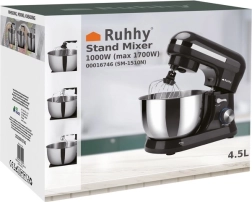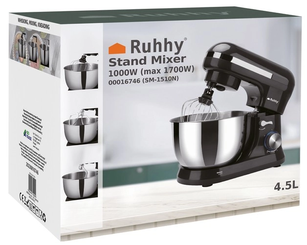Ruhhy planetaarne köögikombain võimsusega 1700 W on varustatud vastupidava 4,5-liitrise roostevabast terasest kausiga. Ergonomiline käepidemega disain ja pritsmekaitse teevad kasutamise mugavaks. Libisemisvastased iminapad tagavad kindla stabiilsuse töötasapinnal. 8-astmeline kiirusjuhtimine koos impulssrežiimiga sobib ideaalselt erinevateks võteteks, sealhulgas vahustamiseks, segamiseks ja sõtkumiseks.