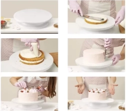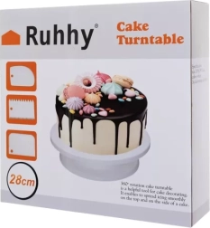 Ruhhy pöörlev tordialus on ideaalne abiline kõigile, kes soovivad torte kaunistada professionaalsel tasemel. Valmistatud kvaliteetsest plastist, mis tagab vastupidavuse ja lihtsa puhastamise. See alus mitte ainult ei muuda kaunistamise töövoo sujuvamaks, vaid sobib ka elegantselt sinu magustoitude serveerimiseks.
