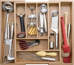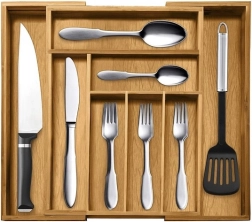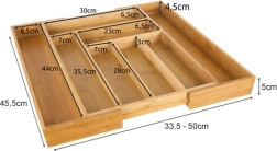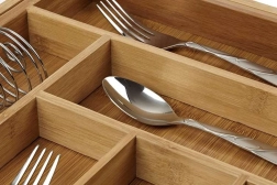 Korraldaja on loodud nii, et hoida esemeid selgelt oma kohal ning lihtsustada igapäevast kasutust. Sile bambusviimistlus vähendab mustuse kinnitumist ja võimaldab lihtsat hooldust jooksva vee all. Praktiline kõrgus ja sektsioonide jaotus tagavad mugava hoiustamise lusikatele, kahvlitele, nugadele ja pisitarvikutele.