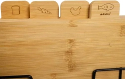 Praktiline nelja bambusest lõikelaua komplekt koos sihvakalt metallist hoidikuga hoiab sinu köögi korras ja hügieenilise. Igal lõikelaual on piktogramm kindlate toiduainete jaoks – kala, liha, köögiviljad ja puuviljad, saiakraam – nii väldid rist-saastumist. K vastupidav bambus on kerge, kiiresti kuivav ja lõhnu mittesiduv puit, mida on lihtne puhastada ja mis kestab kaua.