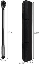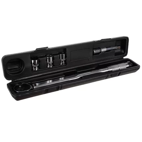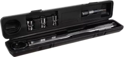Tugev 1/2" pöördemomendi võti padruniga ja otsikute komplektiga 17/19/21 mm ning pikendusega täpseks poltühenduste pingutamiseks ja lahtikeeramiseks. Pakub pöördemomendi vahemikku 28–210 Nm, kahe suunaga töö parem/vasak, LOCK/UNLOCK lukustus ning praktiline kaitsev karp ohutuks hoiustamiseks. Ideaalne kuuskant- ja nelikantpoltidele, konksudele ja mootorratta mutritele.