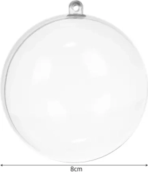 Need läbipaistvad kuulid avamuvad kaheks pooleks, et saaksite need täita oma lemmikdekooriga – alates sulekestest ja lintidest kuni maiustusteni. Tänu kirkale pinnale saab neid maalida nii seest kui väljast ja kombineerida tehnikatega nagu dekupaaž või kodudekoor. Nii loote ainulaadsed ehted, mis rõhutavad jõulude meeleolu.
