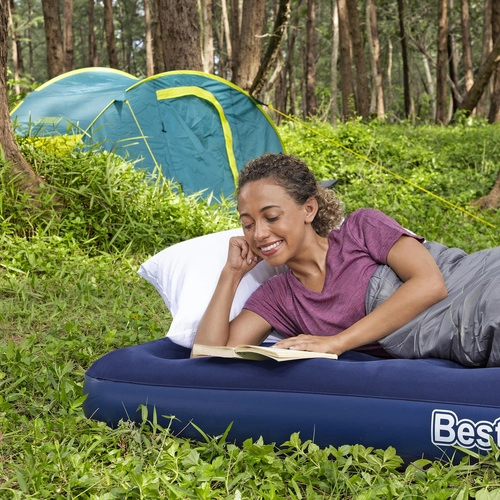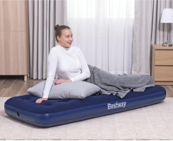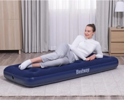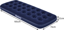 Praktiline täispuhutav madrats ühele mõõtudega 185 × 76 × 22 cm kaubamärgilt BESTWAY on ideaalne nii koju kui ka reisile. Sellel on meeldiv veluurpind, vastupidav coil-beam konstruktsioon, ohutusventiil lihtsaks täitmiseks ja tühjendamiseks ning komplektis on ka iseliimuv paik.