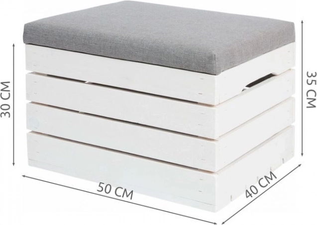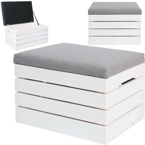Avastage universaalne pufftaburet panipaigaga, mis säästab ruumi ja aitab hoida kodu korras. Ülesklapitav kaas koos istmega võimaldab kiiret juurdepääsu hoiustatud esemetele, samal ajal kui neutraalne kombinatsioon valgest puidust ja hallist polstrist sobitub nii modernsesse kui klassikalisse interjööri.