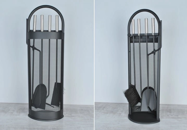 Kõik käepärast: tangid, kühvel, hari, konks/poker ja stabiilne alus korralikuks hoiustamiseks ja kiireks ligipääsuks kamina hooldamisel.