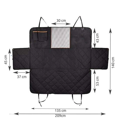 - Lihtne paigaldus ja turvalisus sinu lemmikule tänu avadele turvavööde jaoks. Kate laotub kergesti tagaistmetele ja kinnitatakse rihmadega.