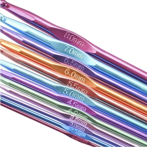 Komplekt sisaldab 12 metallist heegelnõela eri värvides, mis toovad mugavust ja rõõmu igasse heegeldamisprojekti.