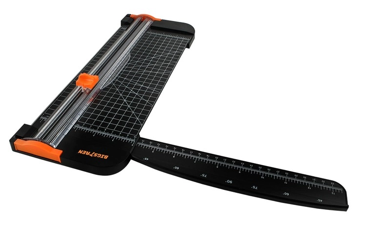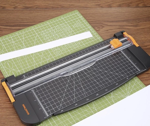 Integreeritud sentimeetri- ja tolliskaala, ruudustik ning läbipaistev juhtliist võimaldavad paberit seada millimeetri täpsusega ja lõigata sirgelt või nurga all.