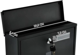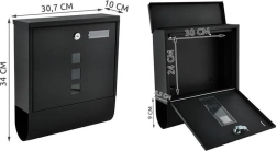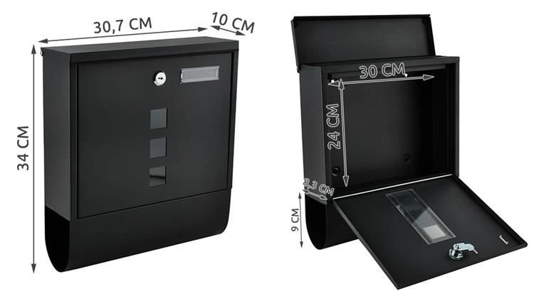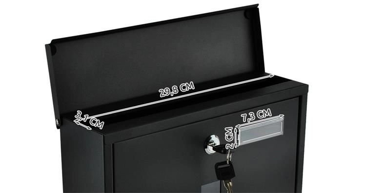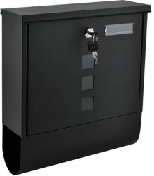 Elegantne must postkast vastupidavast galvaniseeritud tsingitud metallist tagab teie posti turvalise kättetoimetamise. Sellel on kaetud sisestusava A4-formaadile, lukustatav uks 2 võtmega ja praktiline ajalehe ja flaierite hoidik. Tugev konstruktsioon koos ilmastikukaitse ja õhuavadega hoiab saadetised kuivana, paigaldus on lihtne tänu komplektis olevale tarvikutele.