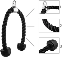 Meie tricepsi köis sobib suurepäraselt laiale harjutuste valikule, mis sihivad õlgu, rinda, selga, triitsepsit ja kõhulihaseid. Tänu tihedalt põimitud nailonkiududele on maksimaalne kandevõime kuni 200 kg, mis tagab vastupidavuse ja pika kasutusea.