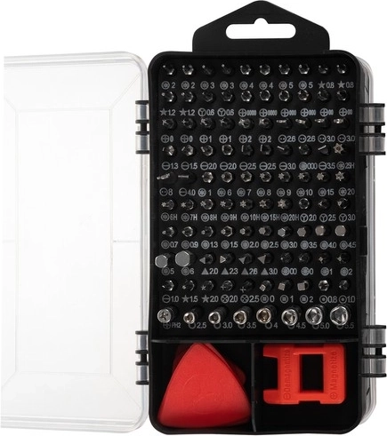 Komplekt sisaldab bitte Torx/Torx avaga, Phillips, lame, kolmnurk, Pentalobe, Y ja teisi – ideaalne telefonidele, sülearvutitele, kelladele ja prillidele.