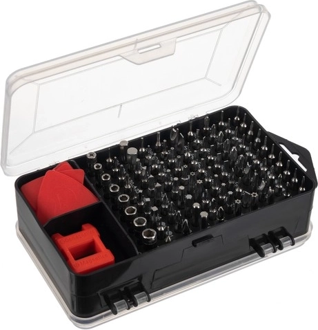 See professionaalne ja hobikasutajale sobiv täppistööriistade komplekt on loodud seadmete kiireks ja ohutuks lahti- ning kokkupanekuks, kus on väikesed ja ebastandardse kujuga kruvid. Igal osal on koht kompaktses, mõlemalt poolt avatavas vutlaris, mis tagab korra, ülevaatlikkuse ja lihtsa kaasaskantavuse. Magnetiseerija aitab mugavalt eemaldada kruvisid raskesti ligipääsetavatest kohtadest.