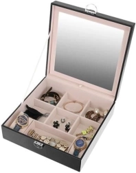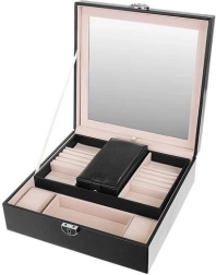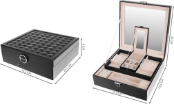 See ehetekarp on suurepärane valik igale ehete ja moelisatarvikute armastajale. Pakkuv mitmetasandiline hoiuruum, sh eemaldatav reisikarp, annab sellele mitmekülgsuse ja praktilisuse, mida hindate ka reisidel. Kaane sisse integreeritud peegel lihtsustab ehete kinnitamist ja kohendamist.