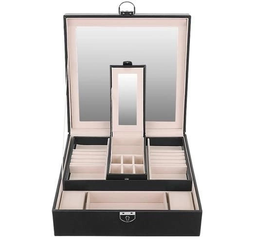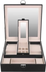 Elegantne Beautylushh ehetekarp musta värvi on ideaalne teie väärtasjade korrastamiseks ja kaitsmiseks. Mitmetasandilise hoiuruumi ja peegliga pakub see kõike, mida vajate ehete ülevaatlikuks hoiustamiseks.
