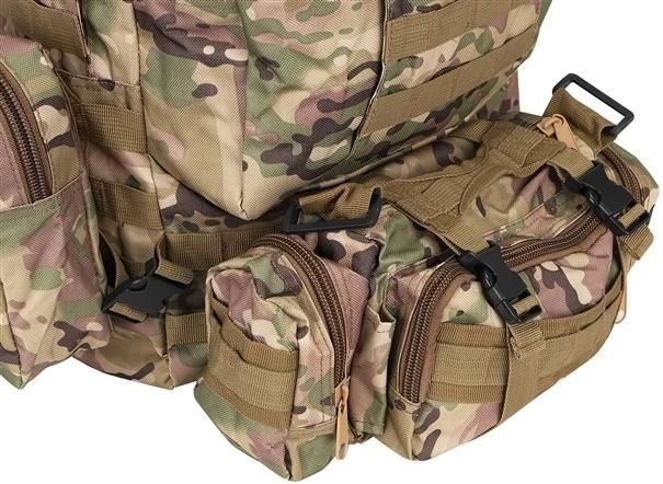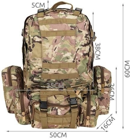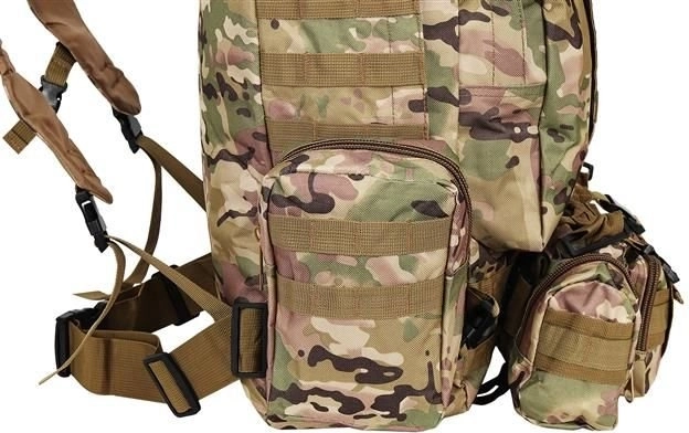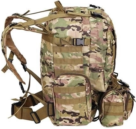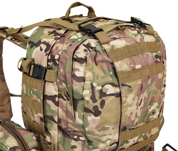 Suur militaarne seljakott 45 l pakub 2 põhisahtlit lisataskutega ja kolm eemaldatavat kotti, mis annavad piisavalt ruumi kogu varustusele. Valmistatud Oxford 900D kangast, mis tagab rebenemis- ja kulumiskindluse. Sisemine PVC-vooder suurendab veekindlust, samal ajal kui hingav võrk õlarihmadel ja seljaosal parandab ventilatsiooni.