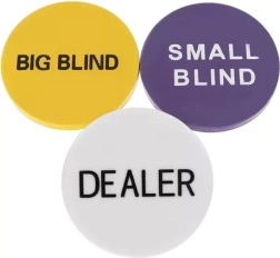 DEALER, SMALL BLIND ja BIG BLIND žetoonid tagavad selged voorud ja sujuva mängukäigu igas jaotuses.
