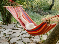 See mugav võrkkiik puidust vahepulkadega hoiab lamamispinna alati avatuna, muutes peale- ja mahamineku lihtsaks. Tugev kangas vastupidavast puuvillast koos polüestri seguga on vastupidav, hingav ja meeldiv igapäevaseks puhkuseks. Tänu kandevõimele 150 kg pakub see kindlust ja stabiilsust nii õues kui siseruumides.