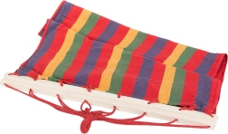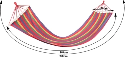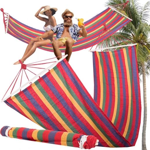Naudi õues lõõgastust selle triibulise, puidust tugipulkadega võrkkiigega. See pakub avarat pinda 200 × 80 cm, stabiilset lamamiskuju tänu vahetükkidele ning kandevõimet kuni 150 kg. Vastupidav puuvilla ja polüestri segu on hingav, meeldiv puudutusele ja hõlpsasti hooldatav. Kiire paigaldus, väike kaal ja stiilne mitmevärviline disain teevad sellest ideaalse valiku aeda, terrassile, rõdule ja ka telkimisse.