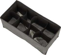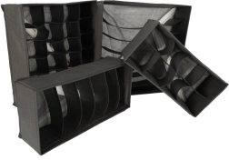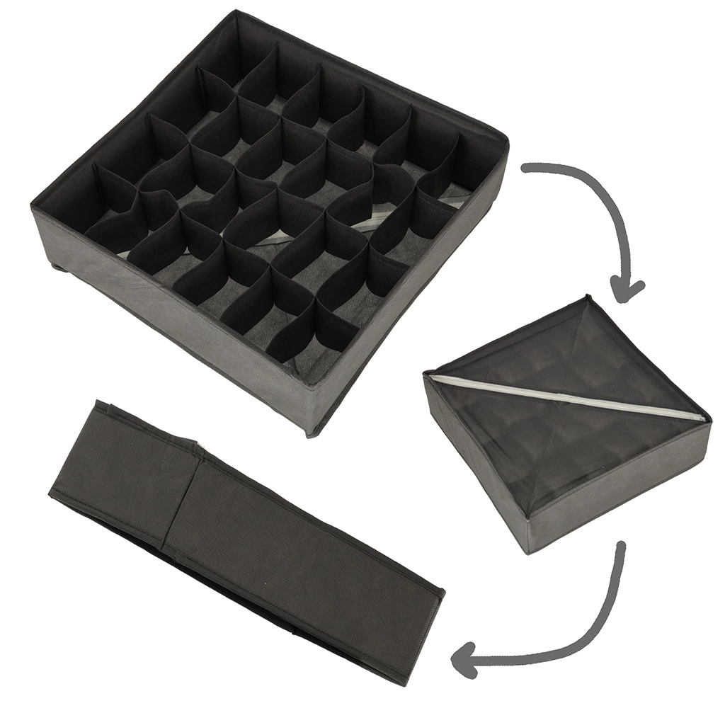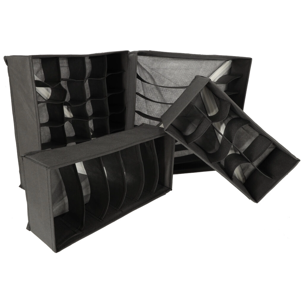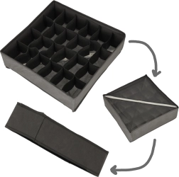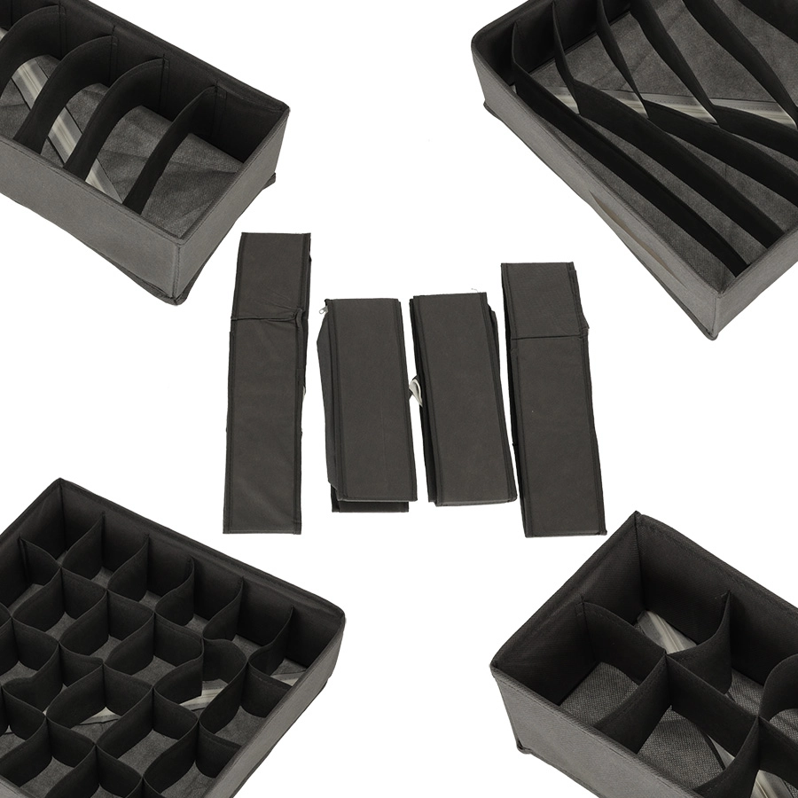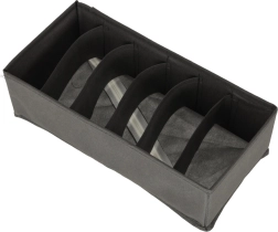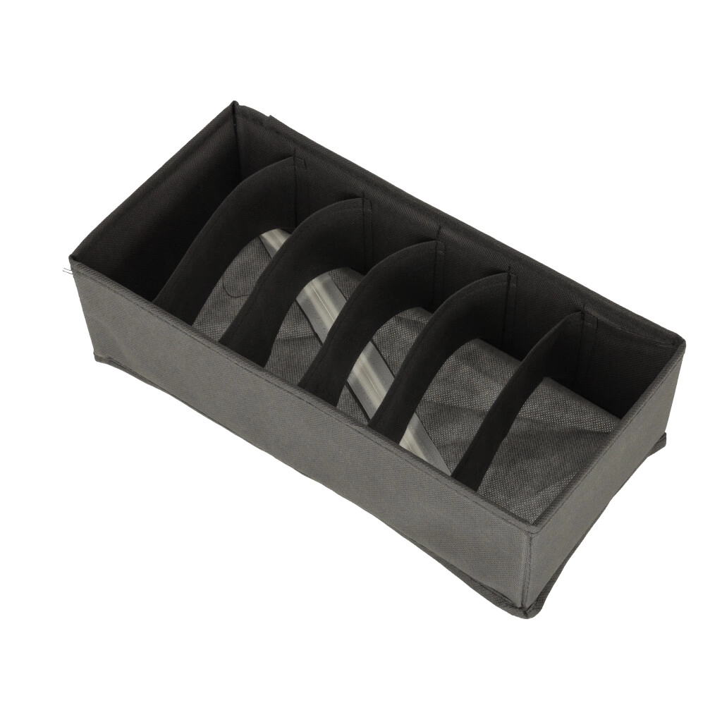 Erineva jaotusega kastid eraldavad sokid, aluspesu, rinnahoidjad, lipsud ja vööd. Ilma kaaneta – pärast sahtli avamist on kõik kohe nähtaval.