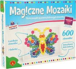 Astu loome maailma Maagiliste mosaiikidega, kus kujutlusvõime muutub tegelikkuseks. Kaasas oleval plaadil, millel on palju auke, saad paigutada eri suuruses värvilisi tükke ning luua kauneid mustreid ja pilte. Kui üks illustratsioon on valmis, eemalda tükid ja alusta uue loomist.