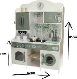 Selle köögi mõõdud on 62 cm x 26 cm x 85 cm, mis teeb sellest ideaalse valiku igasse lastetuppa. Tänu tagasihoidlikele toonidele sobitub see hõlpsasti teie interjööriga.