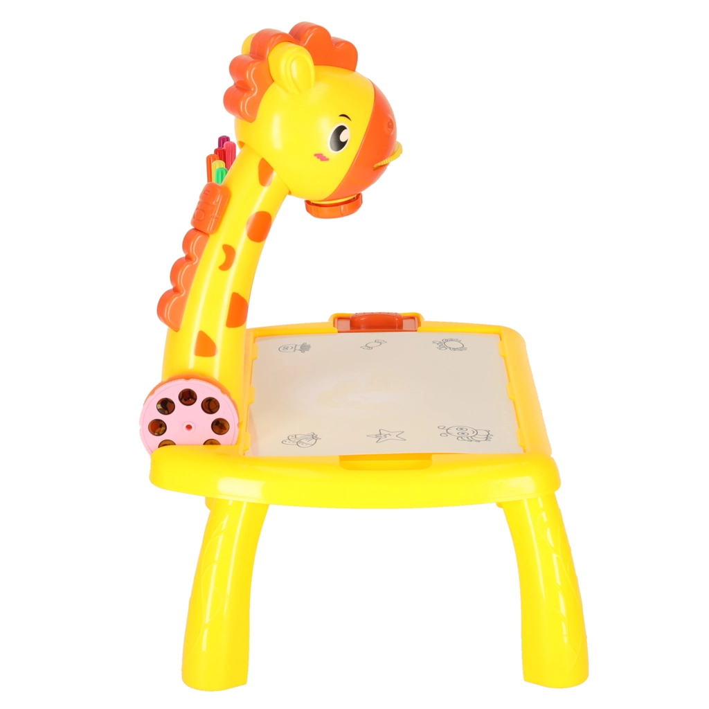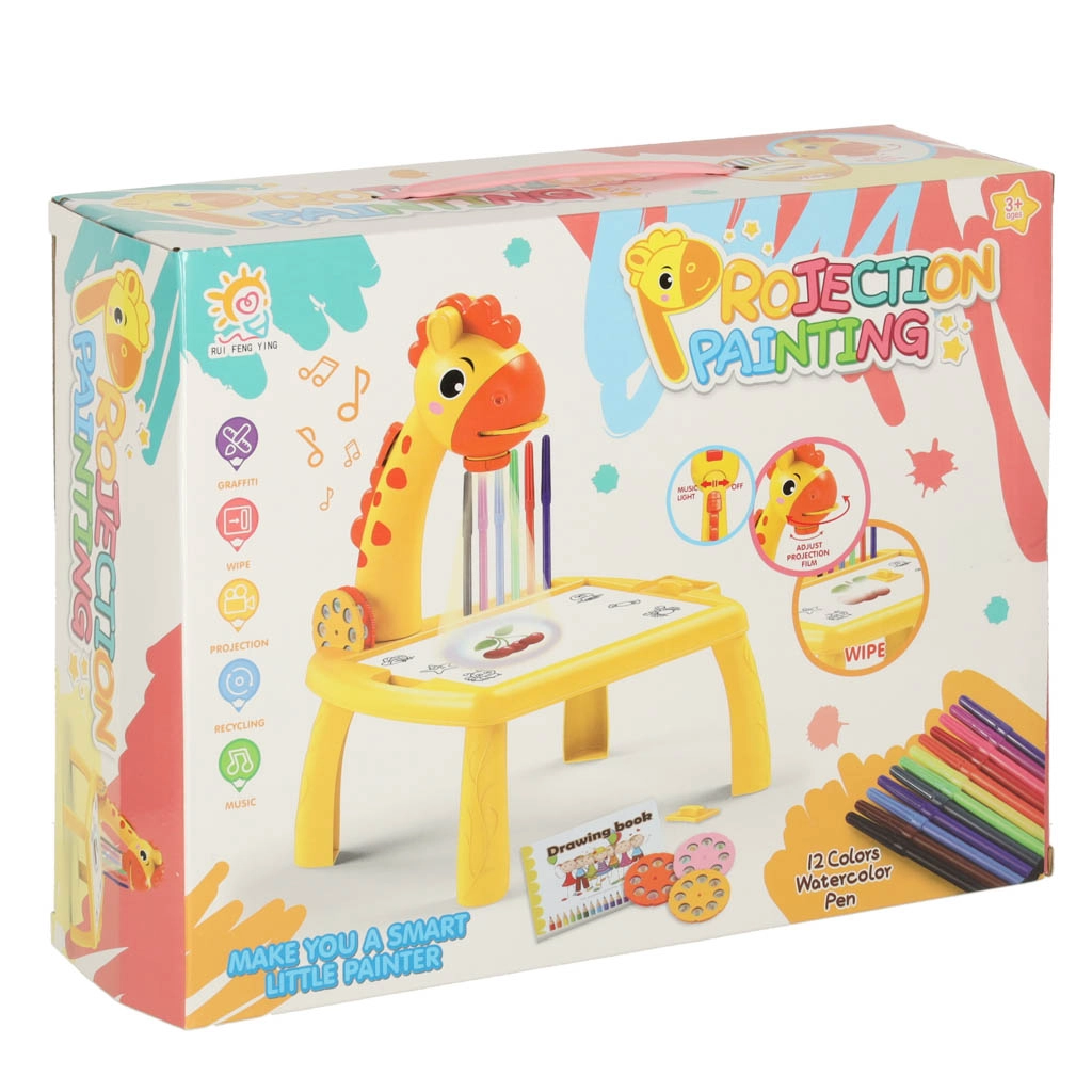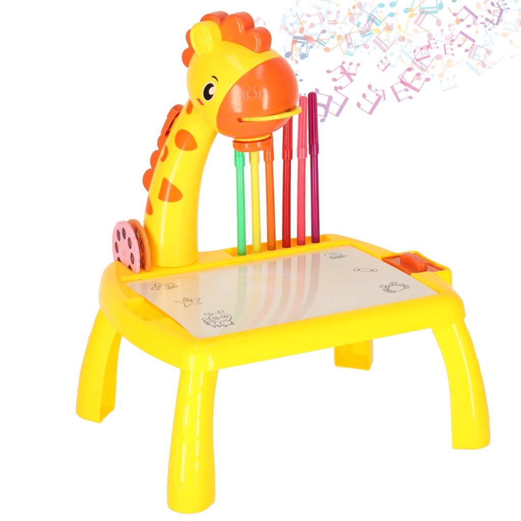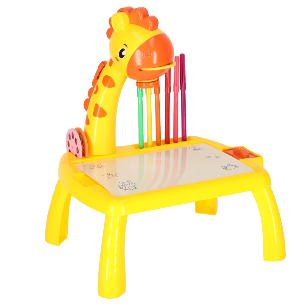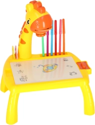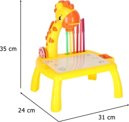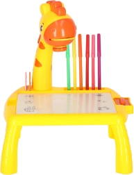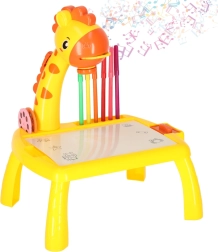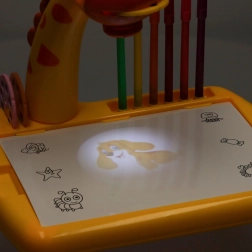Avastage lõbus viis lapsi joonistama õpetada! Kollane kaelkirjakukujuline projektor kuvab paberile pildi, mida lapsed saavad üle joonistada. Komplektis on värvilised vildikad, kolm vahetatavat motiiviketast ja kustutatav alus. Suurepärane abivahend loovuse, peenmotoorika ja täpsuse arendamiseks – ideaalne lastele alates 3. eluaastast.