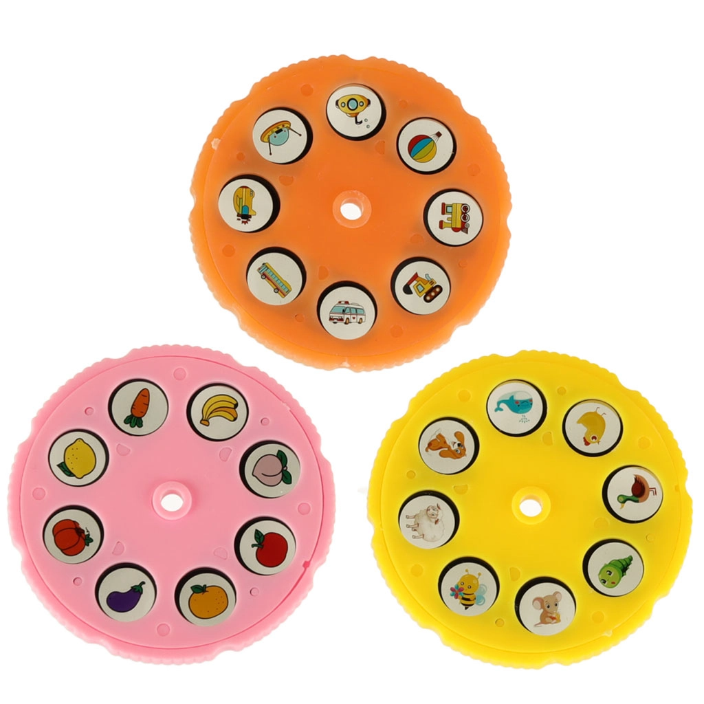 Kolm värvilist ketast pakuvad kokku 24 motiivi (loomad, puuviljad, sõidukid jm). Piisab väiksest pöördest ja uus pilt on kohe valmis.