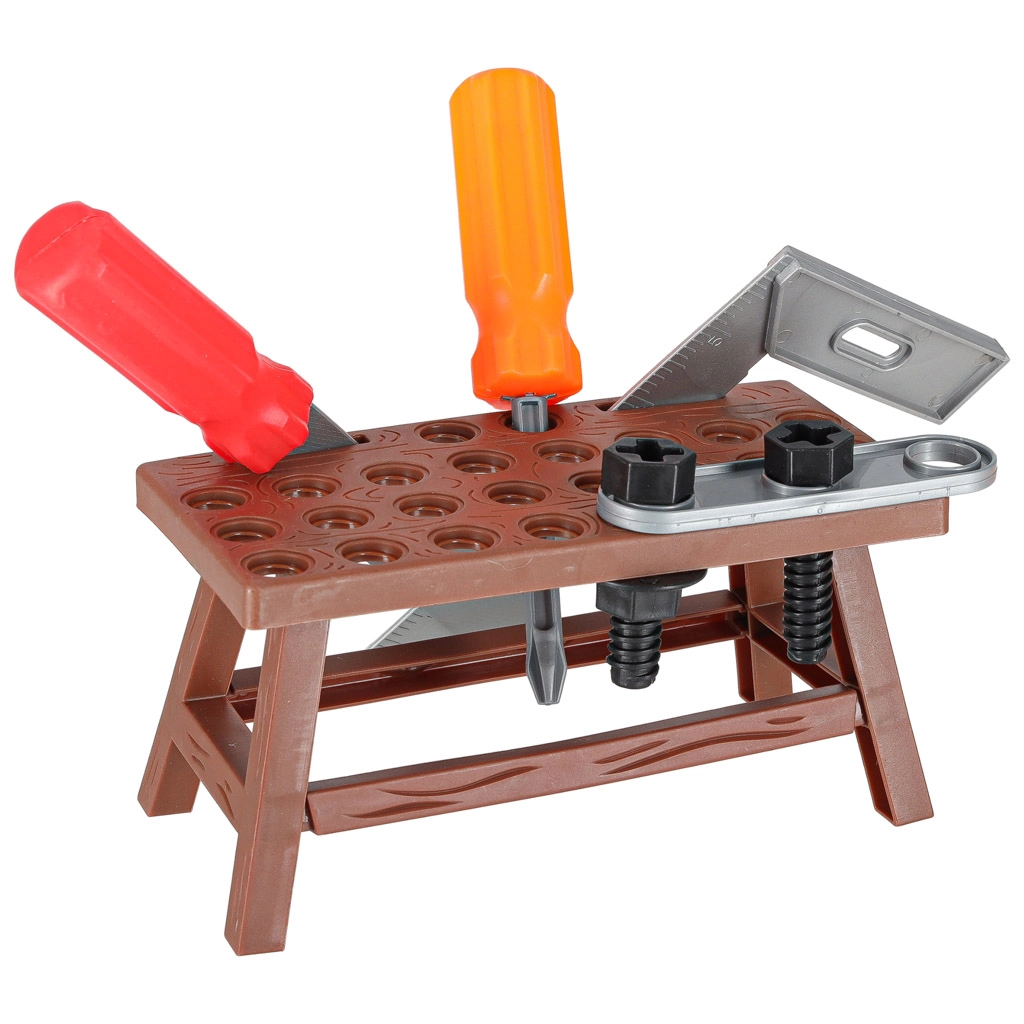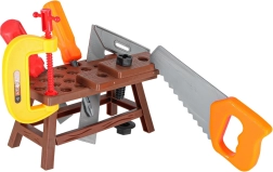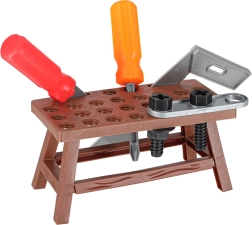 Stabiilne plastist töölaud augulise pealispinna, kruustangi ja tööriistahoidikutega loob lõbusa töökoha igale väikesele meistrile.