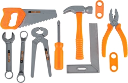 Haamer, saag, tangid, võtmed, kruvikeerajad, konstruktsioonidetailid ning kruvid ja mutrid – kõik ohutuks kruvimiseks, lõikamiseks ja kokku panemiseks.