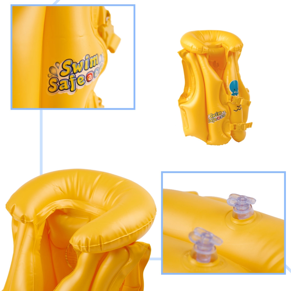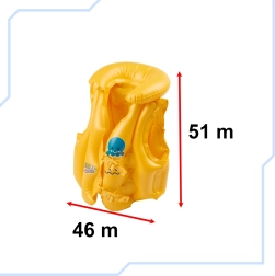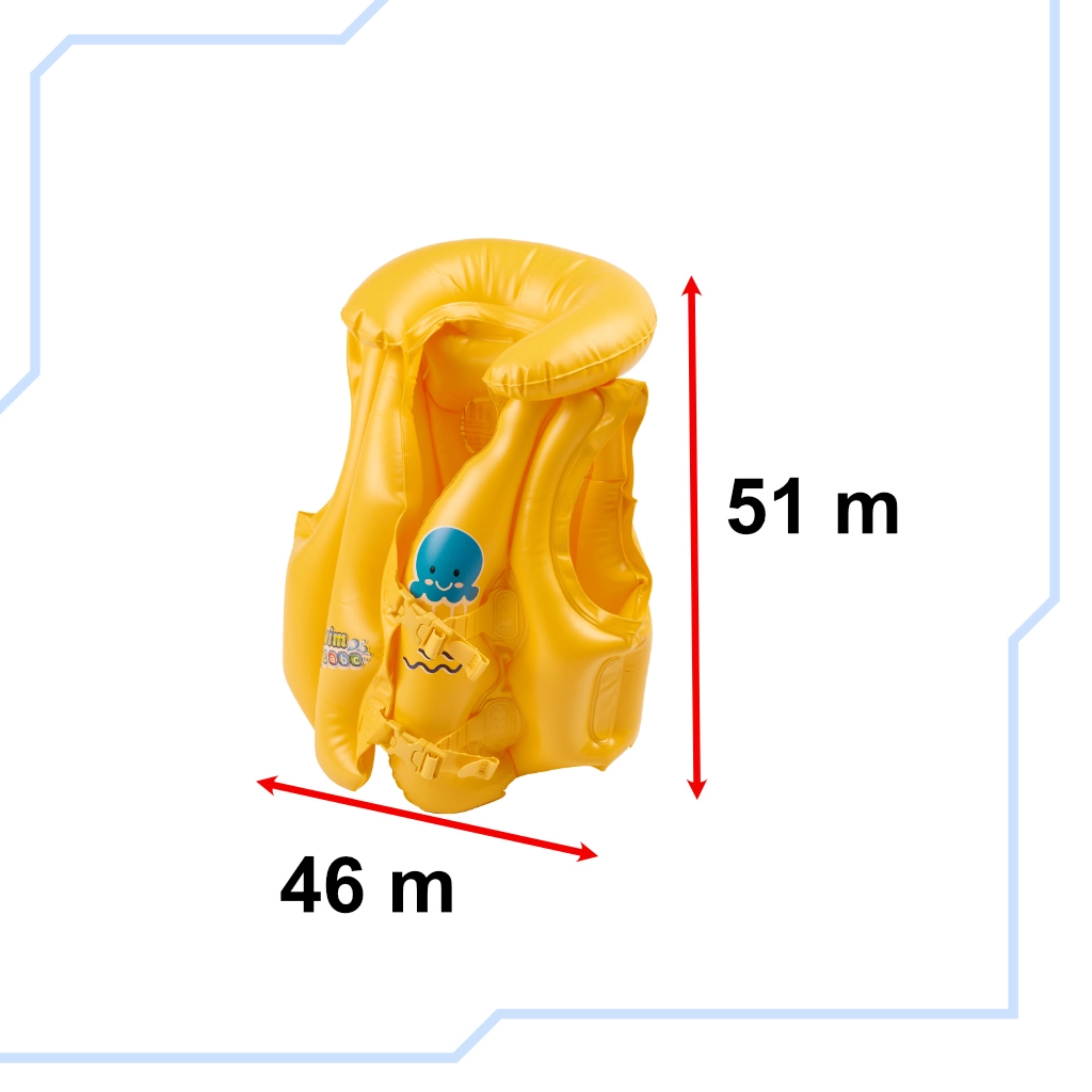 See täispuhutav vest on ideaalne abivahend 3–6‑aastastele lastele, kes õpivad ujuma. See pakub kolme õhukambrit, mis suurendavad ohutust ujumisel – isegi ühe kambri kahjustuse korral püsib vest ujuv. Ere kollane värv tagab vees hea nähtavuse ning reguleeritavad plastpandlad võimaldavad lihtsat kohandamist.