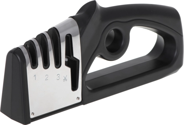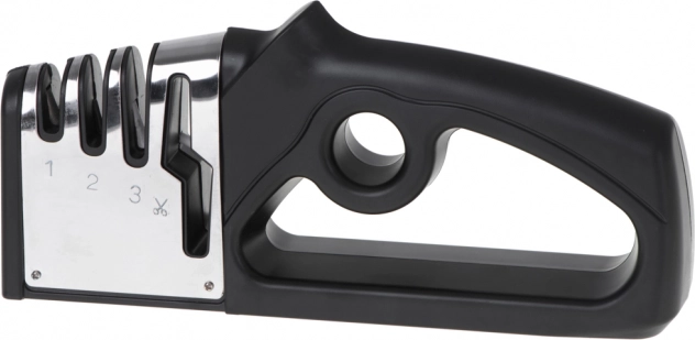 Ei mingeid nürisid nuge ega kääre – see kompaktne 4‑ühes käsiteritaja taastab tera teravuse loetud sekunditega. See pakub kolmeastmelist nugade teritamist (teemant, volfram, keraamika) ja eraldi pesa kääridele. Tänu ergonoomilisele käepidemele ja libisemiskindlale alusele on teritamine kiire, ohutu ja tõhus ka koduköögis.