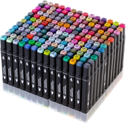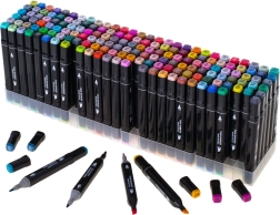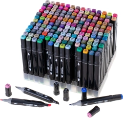 Käivita oma loovus komplektiga, milles on 168 kaheotsalist alkoholimarkerit praktilises vutlaris ja koos plastikust alusega. Eredad, sügavad värvid segunevad ja blenduvad kergesti, kuivavad kiiresti ega määrdu. Lai ja peen ots võimaldavad nii täpseid detaile kui ka kiiret pindade täitmist – ideaalne illustratsioonideks, visandamiseks, disainiks ja värvimiseks.